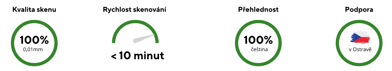 | Přesnost (korunka / celý oblouk) | < 10 μm / < 20 μm |