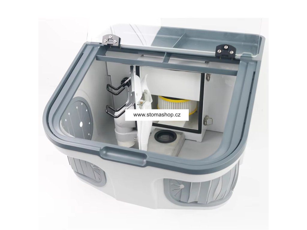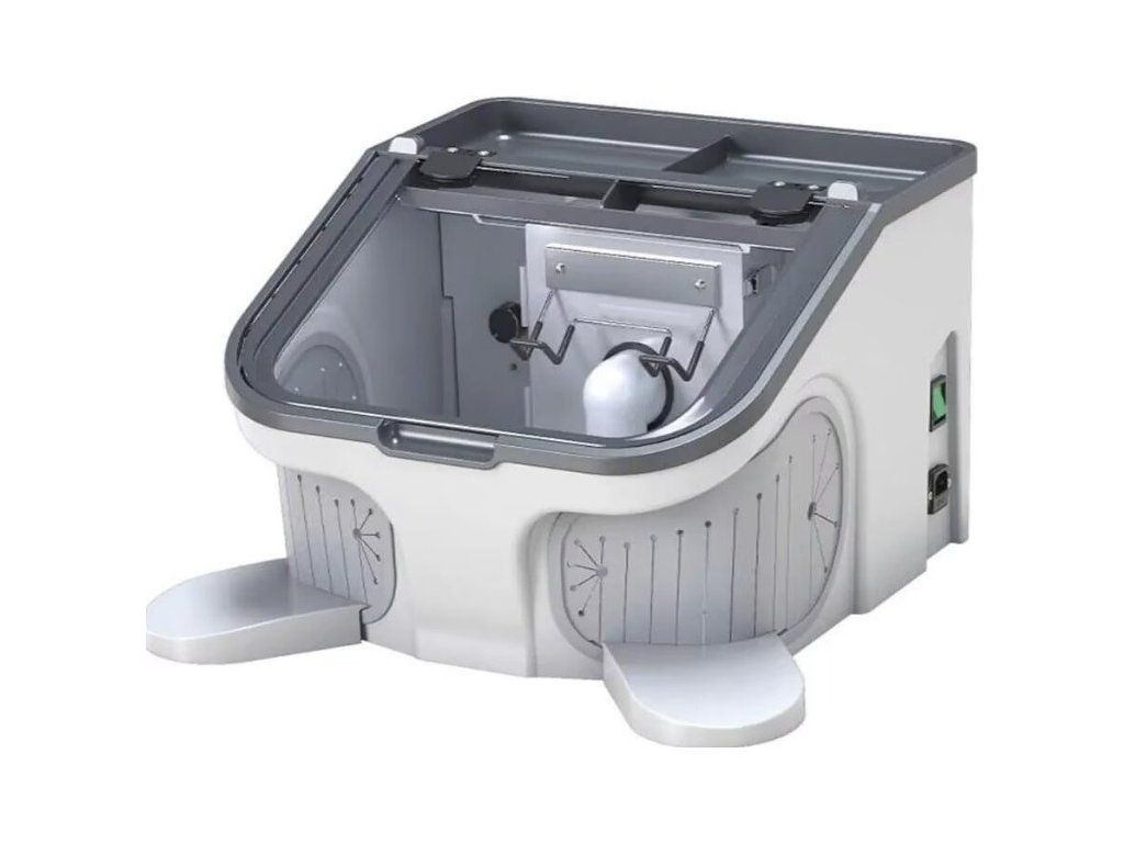 Odsávací box s led osvětlením a vlastním integrovaným odsávání. Těsnění v oblasti rukou proti prašnosti. Odkládací prostor.